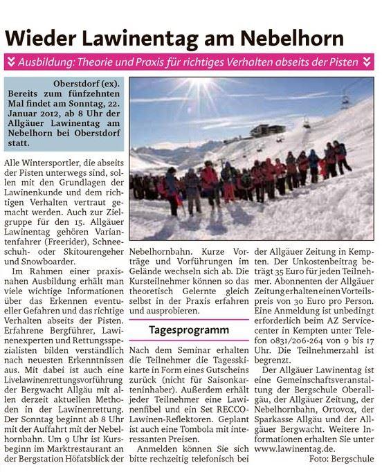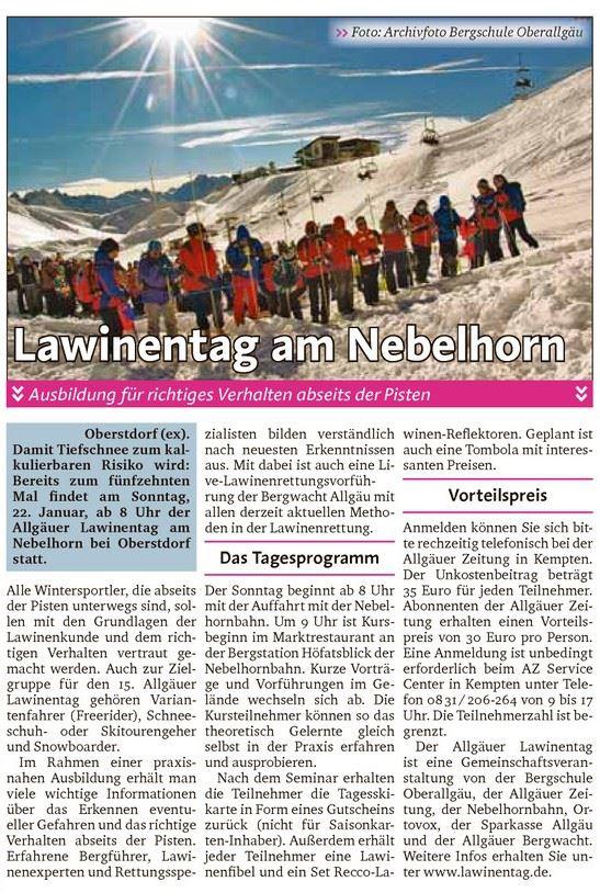 Am 25.01.2015 hatten wir beim 18. Lawinentag ideales "Lawinentagwetter". Durch den Nebel und Schneefall bekamen die Teilnehmer eine realistische Vorstellung und es war eine situative Geländebeurteilung möglich. Die Lawinenvorführung der Bergwacht Allgäu bekam dadurch wettertechnisch ebenfalls einen sehr realen Charakter. Außerdem wurden die Vorträge im Leersaal noch besser angenommen, da man aufgrund der Verhältnisse keinen Traumskitag verpasst hat....